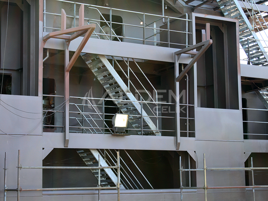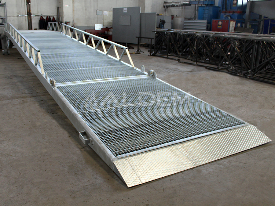 Platform ızgaraları, civata bağlantılı kelepçe sistemleriyle ana konstrüksiyona sabitlenir.